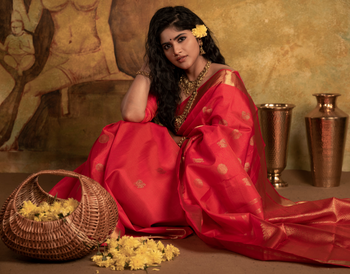 Handwoven Kanchipuram & designer silks curated for weddings, festivities and everyday elegance — crafted to make every woman feel her most beautiful.
