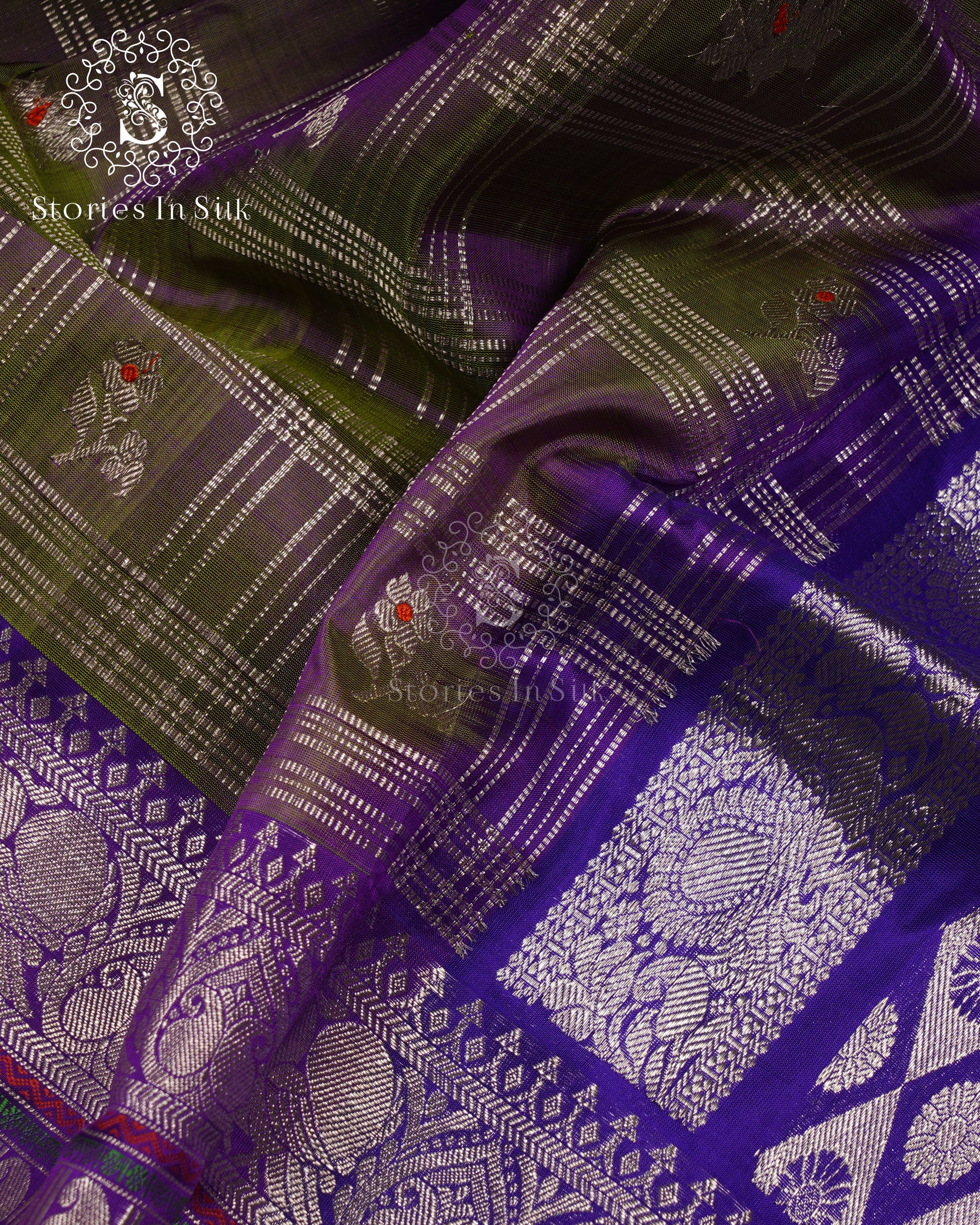 View compareLavender Olive Pure Silk Saree - NS040